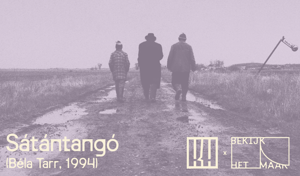 Sátántangó (1994), het zeven en een half uur durende zwart-wit-meesterwerk van de in januari overleden Béla Tarr. Op 14 maart presenteert 'Bekijk Het Maar' deze vertoning in Het Kijkhuis.