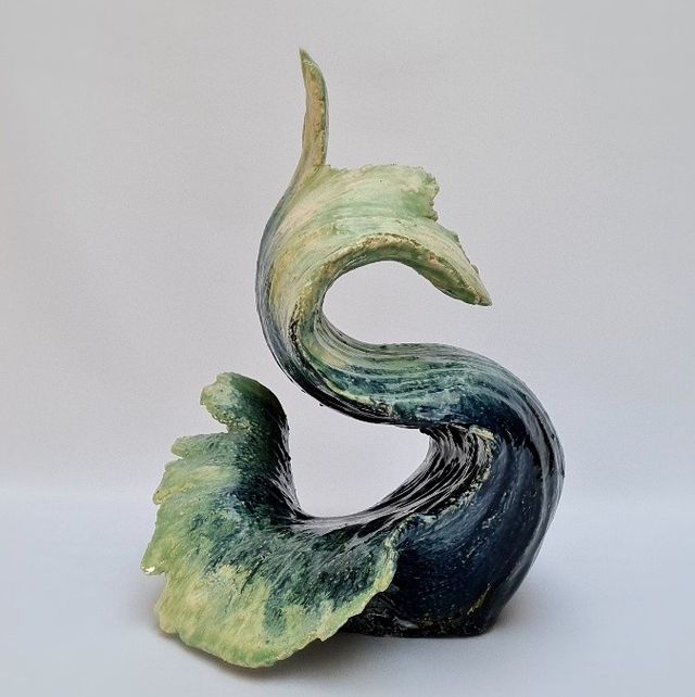 De serie Panta Rhei laat keramische golven zien die beweging, verandering en vergankelijkheid verbeelden—een filosofische kijk op klei als materiaal.