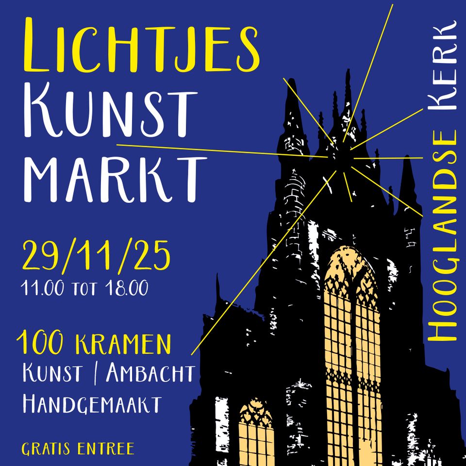 De Lichtjes Kunstmarkt in de prachtige ambiance van de Hooglandse Kerk is een en al sfeer en inspiratie. De uitgelezen plek om unieke Sint en Kerstcadeautjes te vinden, leuke gesprekken te hebben met de makers en eindeloos te kijken bij alle kramen. Het aanbod loopt zeer uiteen en is van hoge kwaliteit met schilderijen, tekeningen, etsen, prints, keramiek, sieraden, glas, glas in lood, mozaïek, dekens, sjaals en hoeden, houten objecten, papiersculpturen, lederwaren, speelgoed en gebruiksartikelen, alles van kunst met een grote K tot leuke kleine hebbedingetjes. Tussendoor kun je bijkomen op het terras en genieten van het lekkers dat Gelateria Freski te bieden heeft. Je wilt dit niet missen!